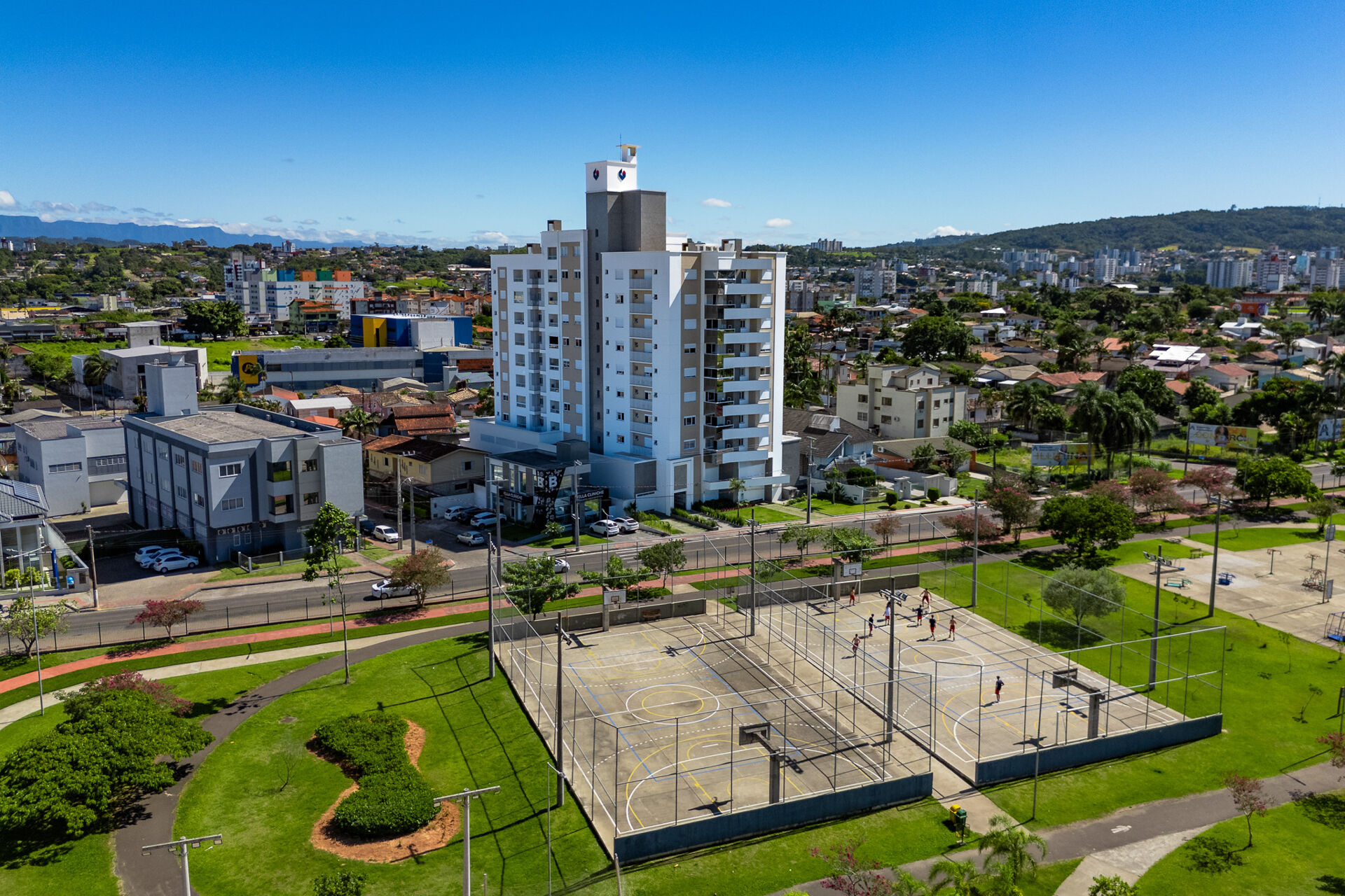 Residencial Lis do Parque. Rua Visconde de Cairú, nº 912, Apto 405, Bairro Santa Bárbara, Criciúma – SC. Em frente ao Parque Altair Guide.